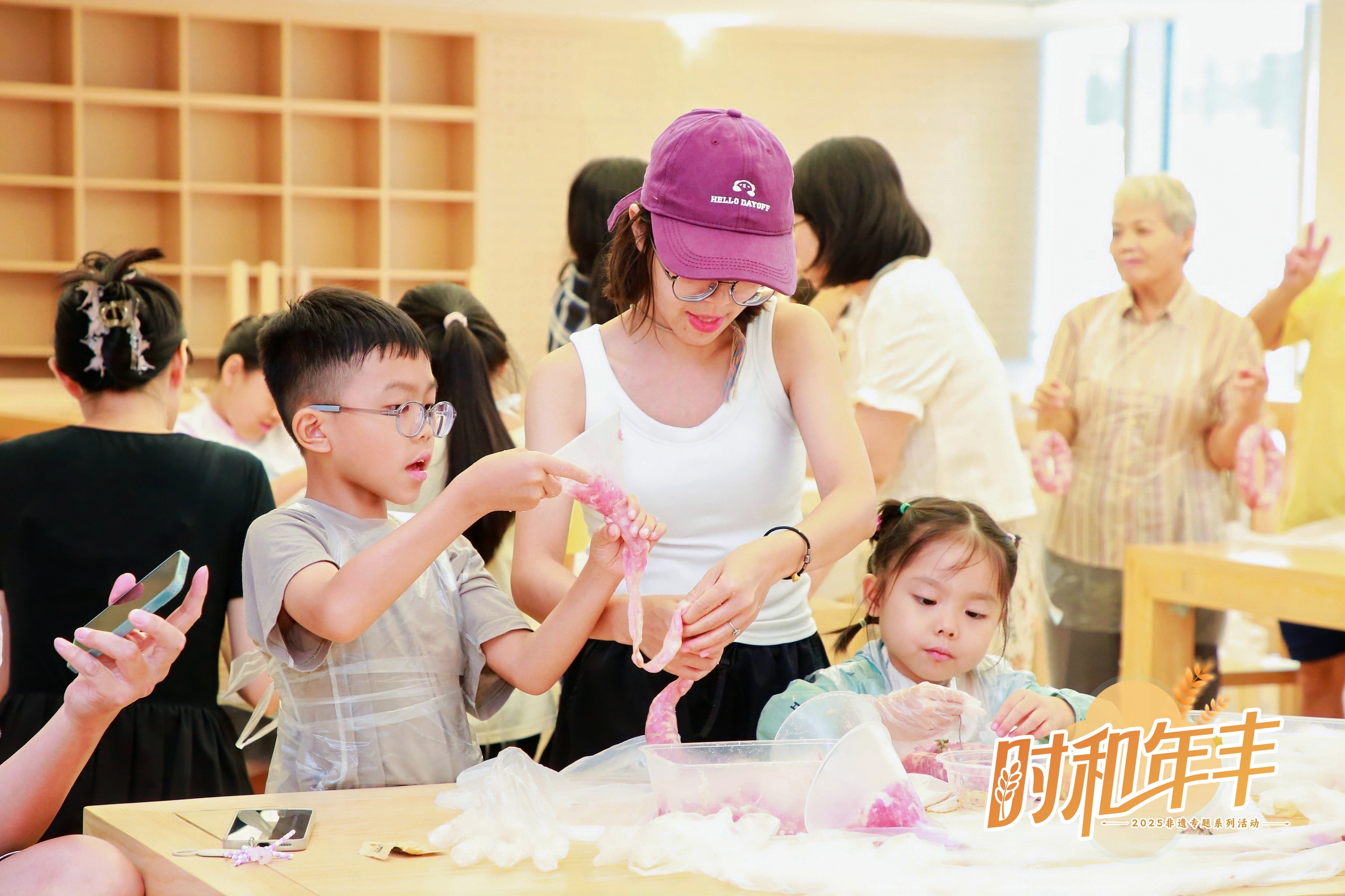9月20日的二楼多功能厅内,中秋节(佛山秋色)市级非遗代表性传承东说念主梁凤英指导学员,诈欺五谷杂粮制作出寓意丰充的像生贡案。聂氏麦秆画区级非遗代表性传承东说念主袁桂喜,指令孩子们体验麦秆画制作。三楼巨匠区域则成为“运鱼苗”英勇赛与“数鱼花”挑战赛的痛快竞技场。